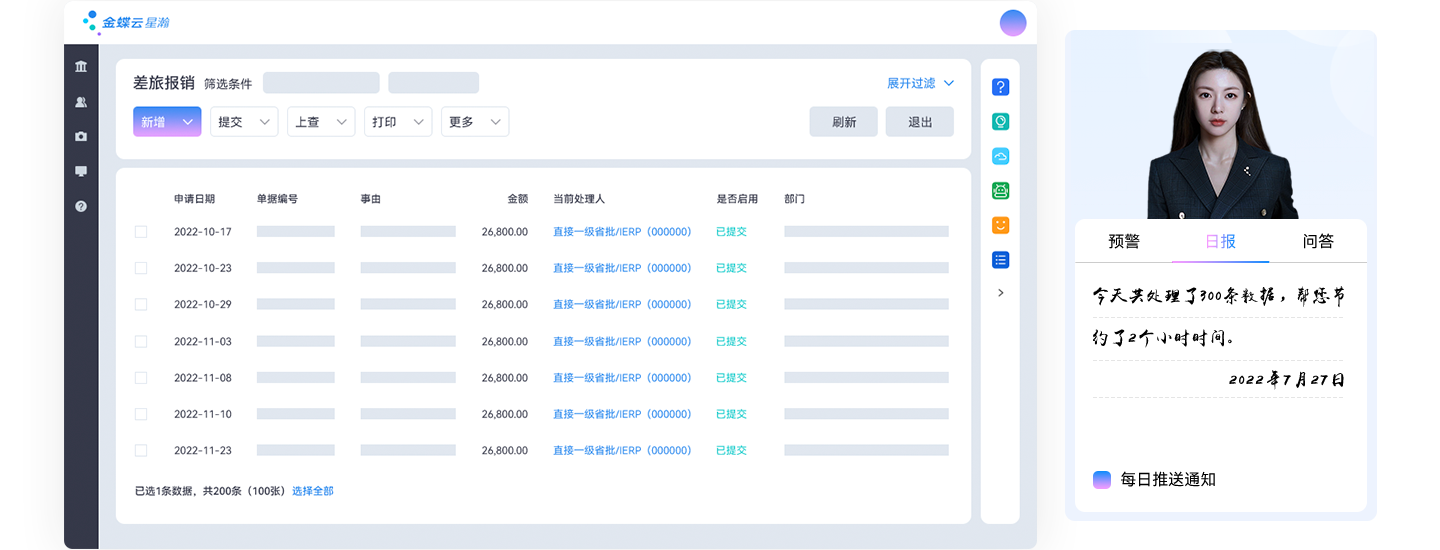金蝶數(shù)字員工,企業(yè)級人工智能“小K”的全新智能化、人格化升級,可主動感知、主動交互,像“人”一樣成長。數(shù)字員工靈活可定制,形象聲音、工作范疇,100+預(yù)設(shè)技能隨需而動,交互、監(jiān)督、訓(xùn)練和管理,一個平臺實現(xiàn)。“人機”協(xié)同辦公,實現(xiàn)企業(yè)大規(guī)模自動化,數(shù)據(jù)驅(qū)動,降本增效
