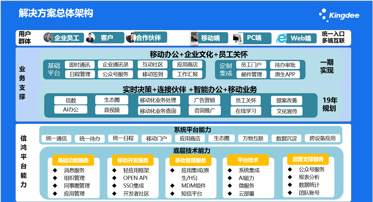 根據(jù)業(yè)務(wù)需求和技術(shù)發(fā)展,信鴻從移動(dòng)辦公延伸至業(yè)務(wù)領(lǐng)域,圍繞“助力經(jīng)營(yíng)決策、連接上下游伙伴、賦能一線員工、AI智能、音視頻”等方面,助力海信內(nèi)外9萬(wàn)用戶進(jìn)入移動(dòng)業(yè)務(wù)、智能辦公模式。主要解決以下問(wèn)題: