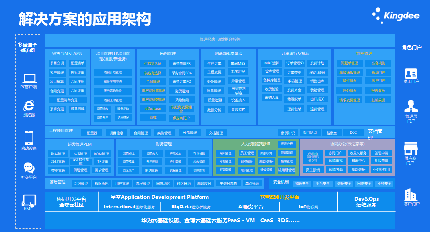 華海通信蒙方明提到,外部環(huán)境的劇烈變化,使得華?;ㄙM(fèi)10多年建成的184個國外IT系統(tǒng),面臨全面國產(chǎn)化的巨大挑戰(zhàn)。華海需要在短時間內(nèi)完成企業(yè)關(guān)鍵IT系統(tǒng)的重建,覆蓋LTC、PTP、ITR、IPD四大核心業(yè)務(wù)流程,以及全業(yè)務(wù)場景:研發(fā)、銷售、工程項(xiàng)目、生產(chǎn)制造、供應(yīng)鏈、售后服務(wù)、財(cái)務(wù)、人力資源和辦公管理等。最終,經(jīng)過華海與金蝶團(tuán)隊(duì)68天的艱苦奮斗,完成了對184個國外系統(tǒng)的替換,基于工業(yè)互聯(lián)網(wǎng)平臺的全業(yè)務(wù)場景協(xié)同解決方案成功上線,順利保障了業(yè)務(wù)的連續(xù)性。