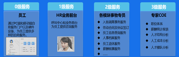 通過(guò)本期項(xiàng)目實(shí)施,搭建了共享的四級(jí)服務(wù)模式,業(yè)務(wù)流程統(tǒng)一梳理后納入共享。業(yè)務(wù)的標(biāo)準(zhǔn)化、集中化辦理,以及服務(wù)的分級(jí)提供,都進(jìn)一步降低了人力資源的運(yùn)營(yíng)成本,提高服務(wù)水平。PC端、移動(dòng)端以及智能硬件的對(duì)接和呼叫中心的接入,為員工提供了更多的服務(wù)渠道,共10+種自助服務(wù)。